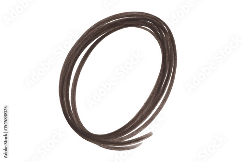 Brown scribbled circle on transparent background, forming letter o, ideal for creative projects