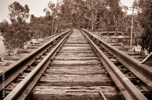rail, rail, railway, track, line, bridge, train, railway line, photo, photograph, image, sepia, brown, black, white, w, old, vintage