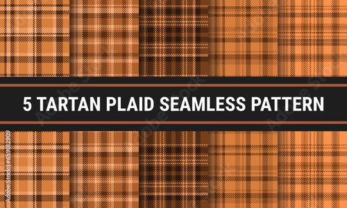 Brown Set Tartan Plaid Seamless Pattern. Checkered fabric texture for flannel shirt, skirt, blanket