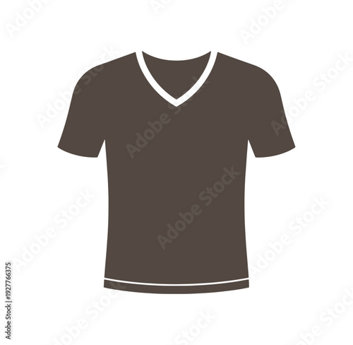 Brown Vneck Tshirt with white trim isolated on transparent background