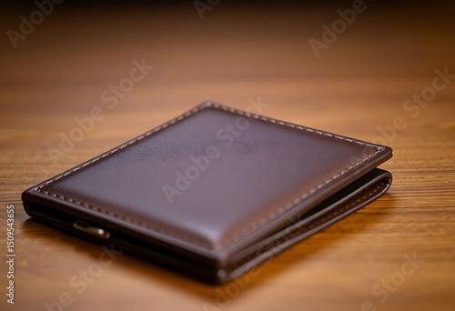 brown wallet sitting on top of a wooden table