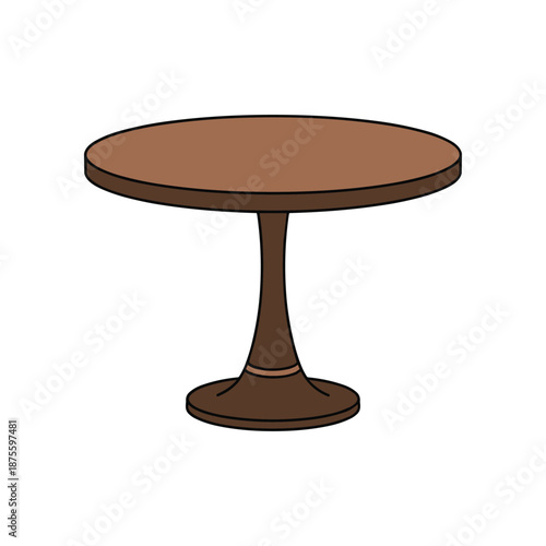 Brown wooden table with pedestal base brown table round table furniture vector illustration isolated on white background.