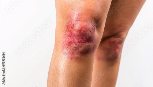 bruise, leg, injury, white background, colours, pain, healing, recovery, treatment, medicine, therapy, cream, ointment, discoloration, swelling, skin, first aid, body, health, wound, grated, impact, tenderness, inflammation, anatomy, diagnostic, emergency, compression, elevation, aloe, arnica, protection, visibility