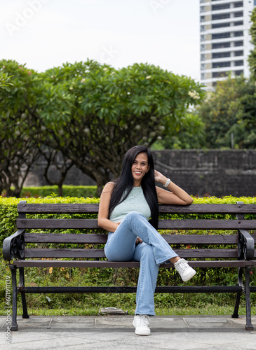 lady, positive, brunette, fashion, beauty, cute, bench, long, young, emotional, background, adult, female, attractive, summer, neckline, woman, bust, model, booty, hair, asian, sitting, joy, walking, happiness, holiday maker, aging process, vacation, hispanic, pretty, sexy, garden, dark hair, nature, urban, beautiful, solitude, medium, dress, femininity, park, goggles, lifestyle, happy
