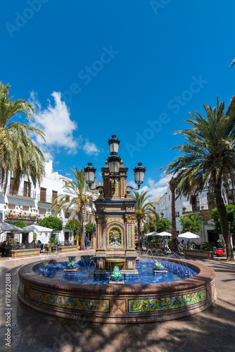 adventure, andalusia, europa, recreation, travel, spain, travel, vacation, stroll, building, relaxation, relax, heaven, warm, summer, memory, stroll, detail, excursion, white, blue, water, colourful, refreshment, thirst, drink, cold, wet, park, park bench, recover, recreation, palm, light, shine