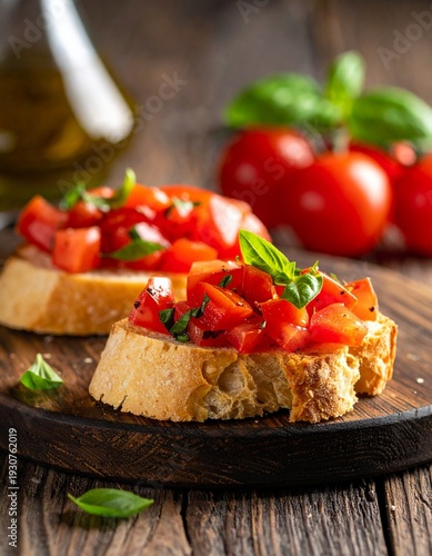 appetiser, bruschetta, italy, tomatoes, basil, ciabatta, olive oil, garlic, toasted, mediterranean, antipasto, salad bar, finger food, eatery, cafes, enjoyment, rustic, wooden board, slight, aromatic, fresh, snack, menu, deli, delicacy, lifestyle, horizontal format, leaky, italian cuisine, vegetarian, bread, party, traditional, culinary