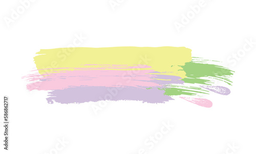 Brush stroke composition element pink, yellow, green colours. Vector stock hand draw illustration isolated on white background for design template, border and frame.