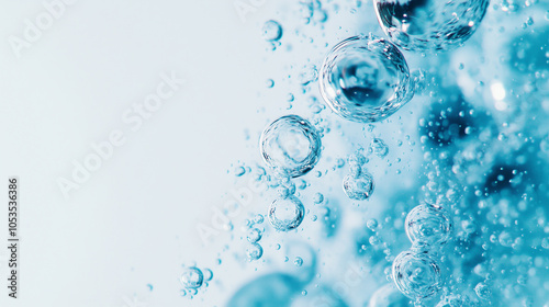 Bubbles float up under water, creating sense of relaxation and tranquility. blue hue enhances calming effect, evoking peaceful underwater atmosphere