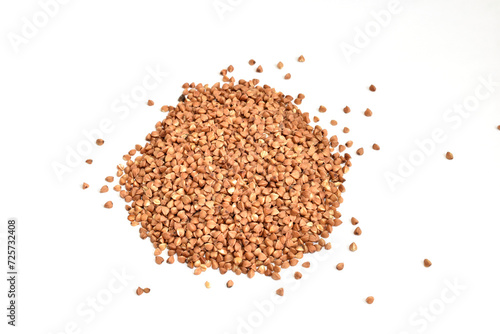 Buckwheat cereal seeds on a white background.