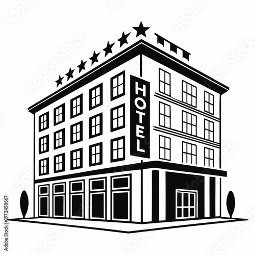 hotel, building, silhouette, hospitality, motel, lodging, accommodation, vector, black, isolated, icon, exterior, facades, symmetric, solid, business, construction, structure, city, travel, tour tourism, property, real estate, apartment, guesthouse, simple, flat, geometric, shape, symbol, element, graphic, illustration, urban, workspace, dorm, residence