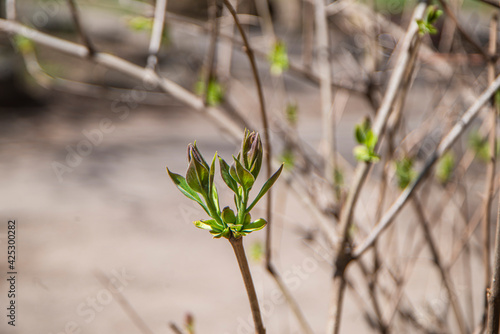 buds with fresh leaves bloom in spring, the awakening of nature, buds on trees with young leaves