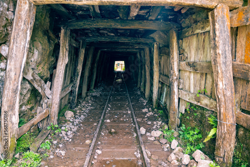 Buferrera mines in Covadonga lakes of Enol, Asturias Spain. Bridge over the rails of the mines.