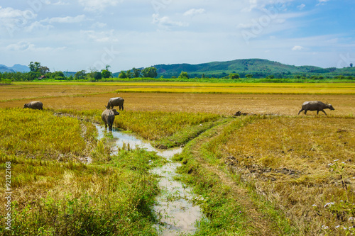 land, wildlife, animal, field, nature, grass, mammal, group, large, outdoors, horned, green, herd, environment, cloud, meadow, landscape, photo, season, brown, blue, yellow, herding, pasture, sky, summer, bush, domestic, herbage, asia, asian ethnicity, cattle, mud, duck pond, water, farm, rice, eating, tropical climate, farmer, buffalo, vietnam, mountain, sun, sunlight, country, countryside, agriculture