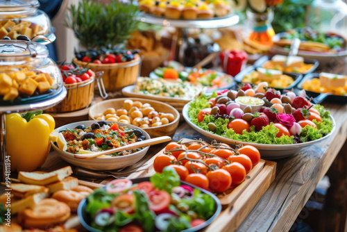 Buffet food catering food party at restaurant mini canapes snacks and appetizers
