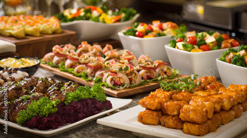 Buffet with gourmet entrees and dishes