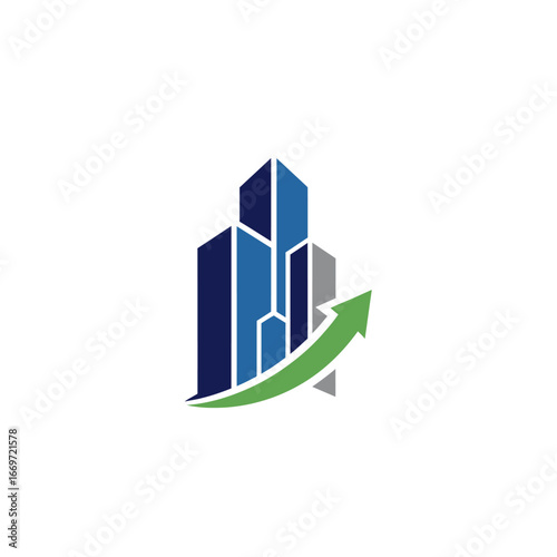 building, arrow, growth, success, real estate, development, city landscape, skyline, urban, modern, architecture, corporate, business, finance, investment, progress, forward, direction, upward, trend, market, economy, property, construction, design, geometric, abstract, icon, logotype, symbol, vector, illustration, graphic, company, future, rising