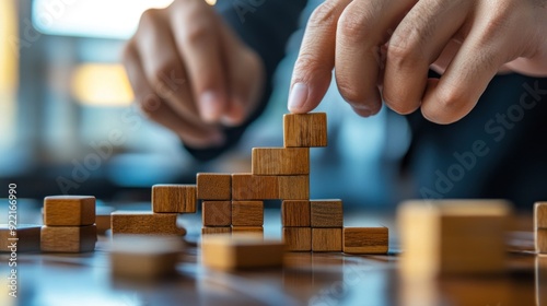 Building Success: A Person Constructing a Tower of Wooden Blocks
