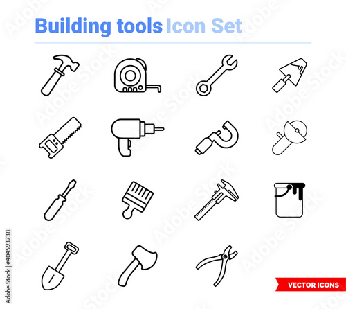Building tools icon set of outline types. Isolated vector sign symbols. Icon pack.