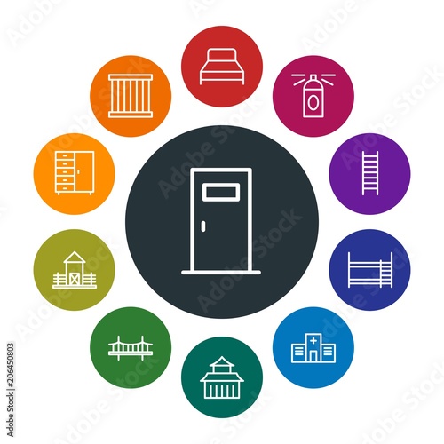 buildings, furniture, housekeeping Infographic Colorful outline Icons Set. Contains such Icons as hospital, crime, bunk, interior, china, house, agriculture and more. Fully Editable. Pixel Perfect