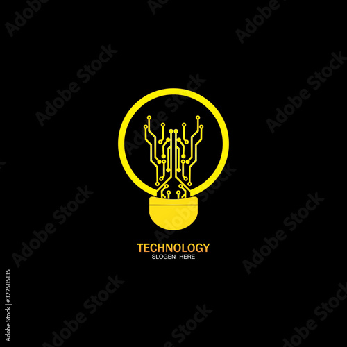 Bulb logo with line technology, Light bulb idea icon with circuit board inside. Business idea concept. Lamp formed by chip connectors