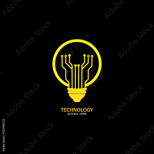 Bulb logo with line technology, Light bulb idea icon with circuit board inside. Business idea concept. Lamp formed by chip connectors