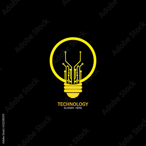 Bulb logo with line technology, Light bulb idea icon with circuit board inside. Business idea concept. Lamp formed by chip connectors
