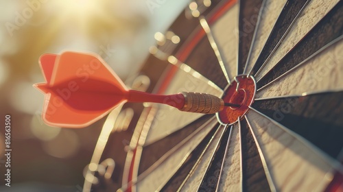 bullseye target or dart board has red dart arrow throw hitting the center of a shooting for business targeting and winning goals business concepts.