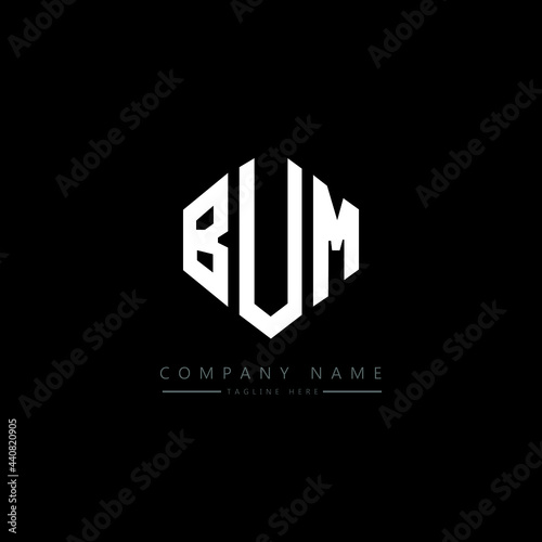 BUM letter logo design with polygon shape. BUM polygon logo monogram. BUM cube logo design. BUM hexagon vector logo template white and black colors. BUM monogram, BUM business and real estate logo.