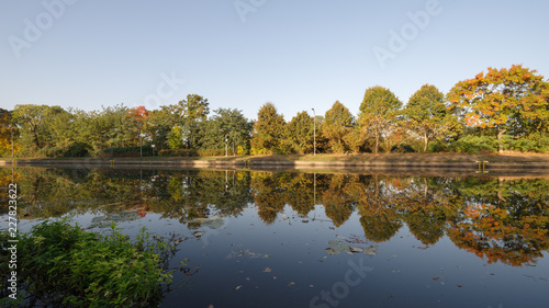 water, autumn, countryside, nature, forest, tree, flux, fall, heaven, duck pond, blue, park, green, yellow, cloud, spring, season, pretty, paint, colourful, outdoors, summer, natural park, water sport, leaf, colourful, brandenburg