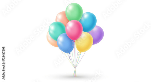 Bunch of colorful balloons isolated on white background collection of vibrant helium balloons for birthday party, celebration, or special event decoration