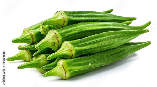 Bunch of fresh raw okra pods isolated on the white background