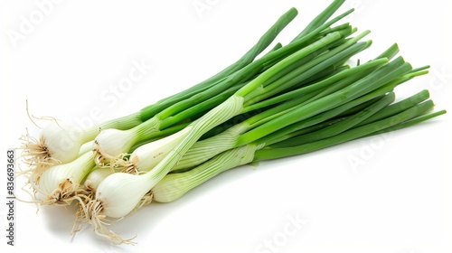 bunch of green onions isolated on white background. healthy veggie nature food concept