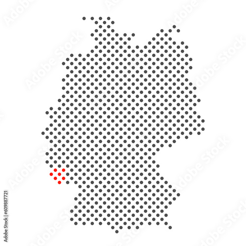 Bundesland Saarland: Karte von Deutschland aus Punkten mit Markierung