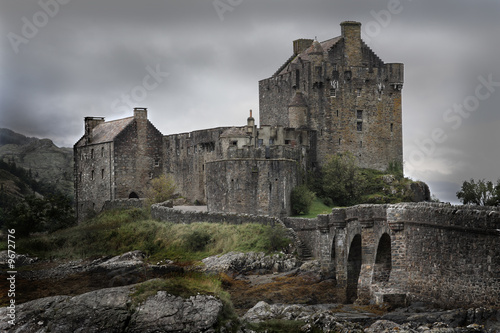 lock, castle, scotland, highland, highlander, water, see, rock, stone, fortress, aged, middle-ages, bridge
