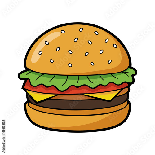 hamburger, burger, food, cheese, cheeseburger, bun, sandwich, bread, beef, meat, lettuce, isolated, fast, meal, tomatoes, white, lunch, fat, fast food, sesame, snack, grilled, illustration, unhealthy, dinner