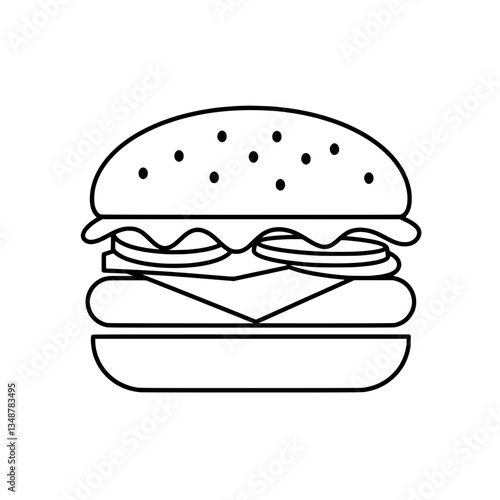 Burger Outline: A simple and clean illustration of a delicious burger, perfect for culinary-themed projects.