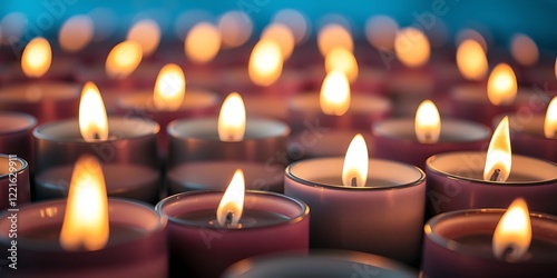 Burning candles glowing in the dark for a romantic and festive atmosphere