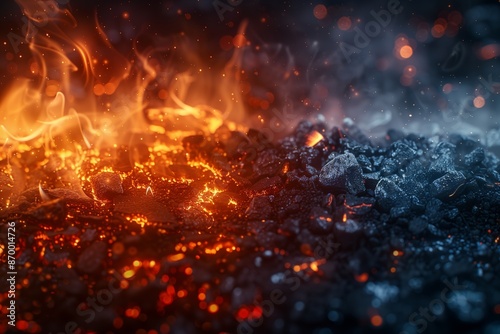 ember, smoke, fire, burning, closeup, glowing, red, orange, black, dark, background, heat, warm, inviting, abstract, texture, detail, nature, light, bokeh, night, still life, macro, art, graphic, design, wallpaper, screen, digital artwork