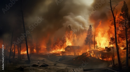 burning house in the forest