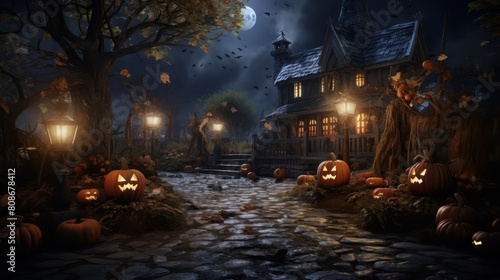 halloween, night, burning, light, atmospheric, greeting card, old house, party, religion, magic, invitation, evil, fairy, holiday, culture, celebration, supernatural, autumn, art, dark, mystery, skittish, tree, pumpkin, scarey, horror, black, concept, fall, gloomy, witchcraft, november, flier, event, path