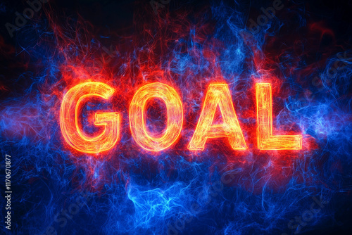 goal, signs, burning, flames, abstract, word, text, blue, background, concept, illustration