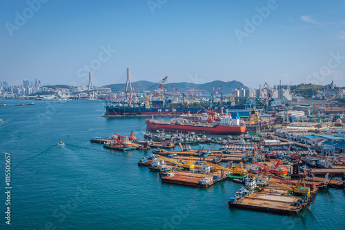 Busan, South Korea - October 12 2024 "View from the rooftop on Busan's port and city center"
