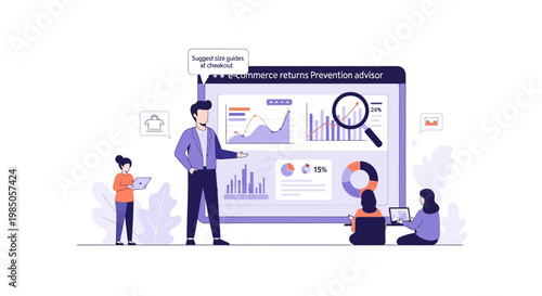 Business analytics presentation with charts and data visualization, team collaboration