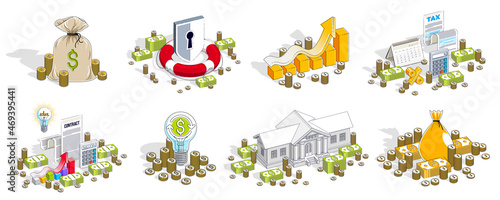 money, business, finance, three-dimensional, income, credit, financial, savings, vector, commercial, design, illustration, set, collection, bank, deposit, calculating machine, percent, contract, tax, taxation, law, accounting, document, refund, account, debt, budget, funds, management, planning, analysis, baby pig, loan, invest, interest, spend, fee, growth, clock, time, economy, concept, isolated, shield, defense, safety, insurance