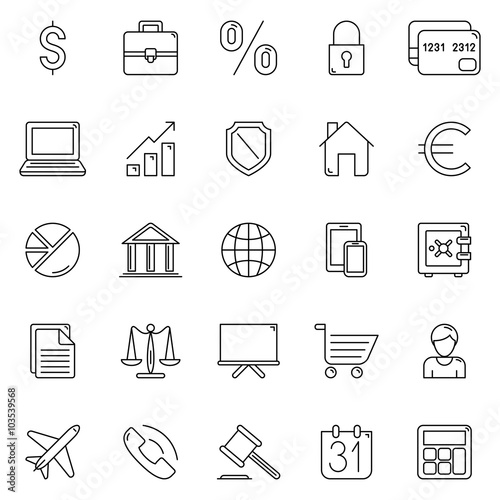 business, finance, shopping, icon, signs, symbol, thin, line, vector, illustration, market, buy, dollar, euro, currency, bank, computer, cyberspace, web, design, bag, lock, set, credit, card, mobile, phone, calendar, globe, simple