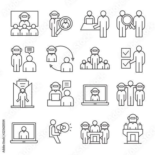 allocation, announce, business, business meeting, businessperson, check, company, corporation, entrepreneur, human resources, icon, illustration, interview, job, job interview, laptop, leader, line, management, manpower, meeting, megaphone, office, organisation, people, performance, present, presentation, recruiting, recruitment, robot, rotate, search, set, signs, speaker, symbol, teamwork, tick, vector, working