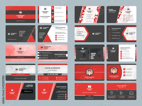 Business card templates. Stationery design vector set. Red and black colors. Flat style vector illustration