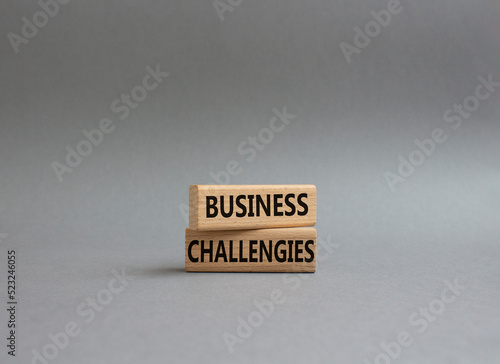 Business challenges symbol. Concept word Business challenges on wooden blocks. Beautiful grey background. Business and Business challenges concept. Copy space