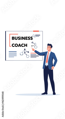 business, coach, strategy, whiteboard, presentation, diagram, plan, training, mentor, consulting, management, leadership, success, growth, development, career, corporate, professional, office, meeting, teamwork, collaboration, communication, explanation, pointing, suit, attaching, confident, expert, advice, guidance, solution, analysis, planning, target, goal, achievement, progress, improvement, skill, cognition, learning, teaching, seminar, workshop, speaker, trainer, instructor, illustration