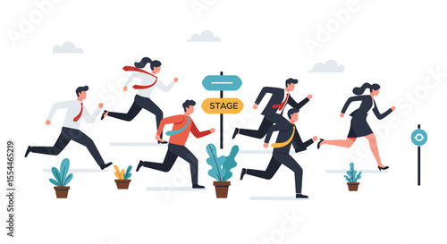 competition, business, corporate, flat, team, run, race, people, office, concept, goal, success, achievement, progress, teamwork, dynamic, movement, plant, direction, suit, path, career, journey, professional, sprint, colleague, modern, colourful, workplace, energetic, motivation